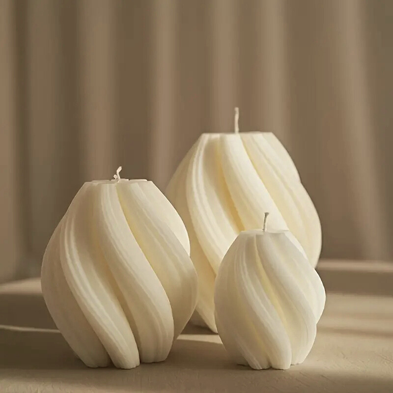 Unlike traditional smooth candles, its surface is sculpted with delicate swirls and peaks, giving it a handcrafted, artisanal feel.