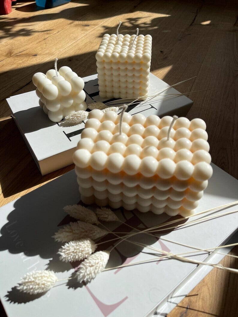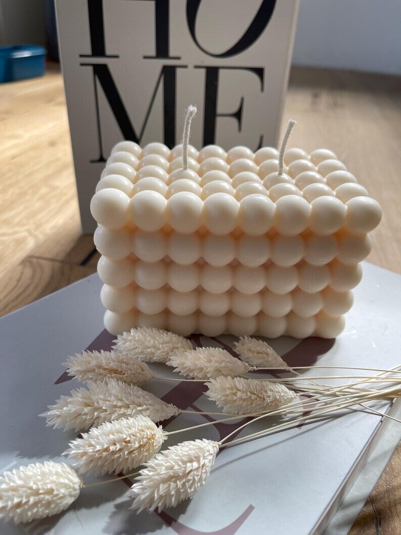 A cube candle features a clean, symmetrical square shape that adds a structured and contemporary touch to any space.