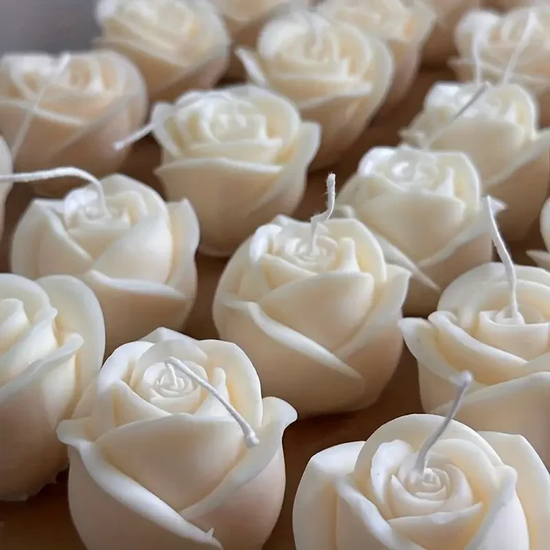 This candle is intricately shaped like a rose in full bloom, with carefully detailed petals that create a lifelike and artistic appearance.